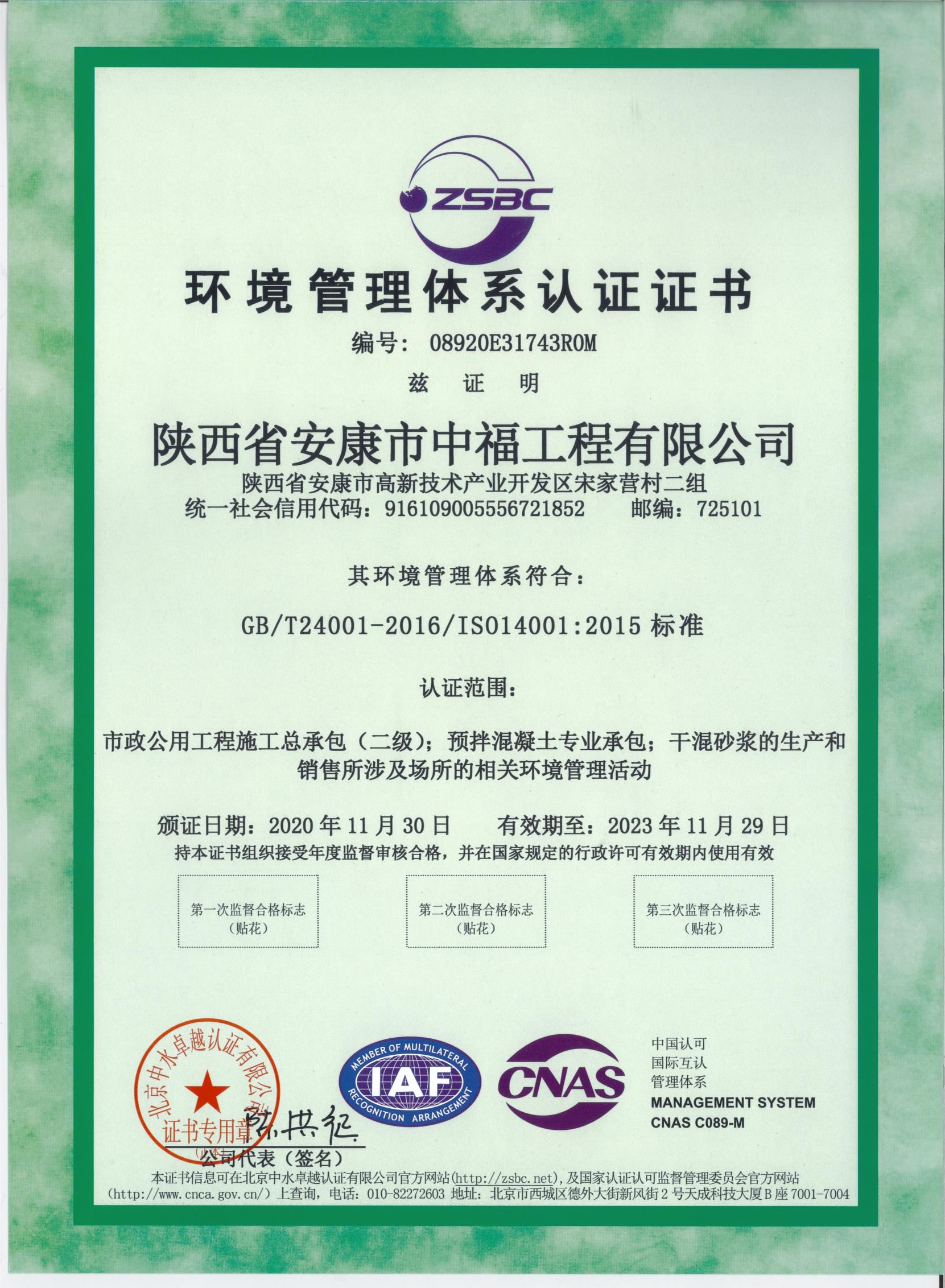 ISO三體系認證證書