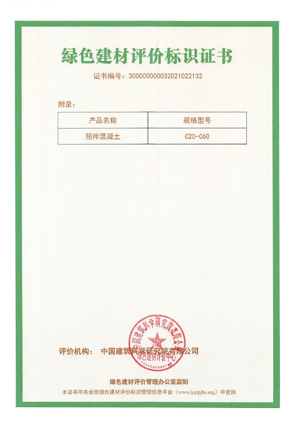 黨的十八大以來,保護環(huán)境,使用綠色建材、實施綠色建筑,已成為建筑行業(yè)和全社會的廣泛共識。根據(jù)國家相關(guān)部委發(fā)布的《關(guān)于推動綠色建材產(chǎn)品標準、認證、標識工作的指導意見》,結(jié)合上級主管部門和建筑行業(yè)的監(jiān)管要求,中福公司立足實際,積極響應政府發(fā)展綠色產(chǎn)品的號召,于2020年初開展了中福公司綠色建材評價標識工作。經(jīng)過多年的精心準備,于2021年2月初喜獲中國建筑科學研究院有限公司頒發(fā)的“陜西省安康市中福工程有限公司預拌混凝土、預拌砂漿綠色建材評價標識認證證書”(等級為三星)。