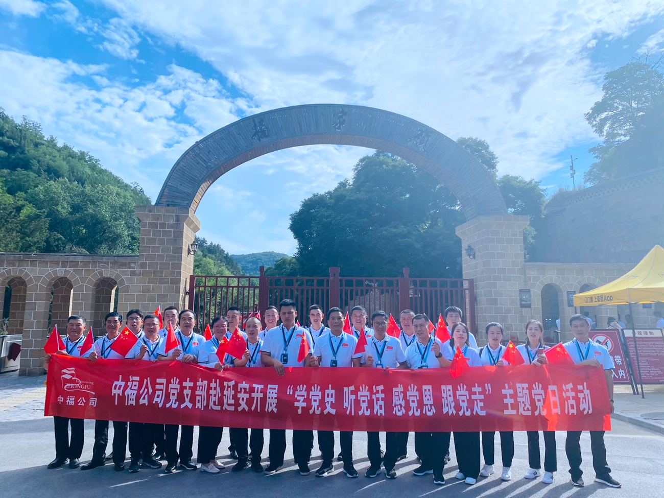 ——中福公司黨支部赴延安開展“學(xué)黨史 聽黨話 感黨恩 跟黨走”主題黨日活動(dòng) 值此中國(guó)共產(chǎn)黨建黨100周年之際,為喜迎黨的生日,緬懷革命先烈,追尋紅色記憶,激勵(lì)全體黨員干部愛黨、愛國(guó)的紅色情懷,中福公司黨支部積極響應(yīng)上級(jí)黨工委的號(hào)召,于2021年6月26日至6月27日在總經(jīng)理胡國(guó)財(cái)、支部書記徐文的帶領(lǐng)下,組織公司全體黨員干部、入黨積極分子一行20余人赴延安開展“學(xué)黨史 聽黨話 感黨恩 跟黨走”主題黨日活動(dòng)。