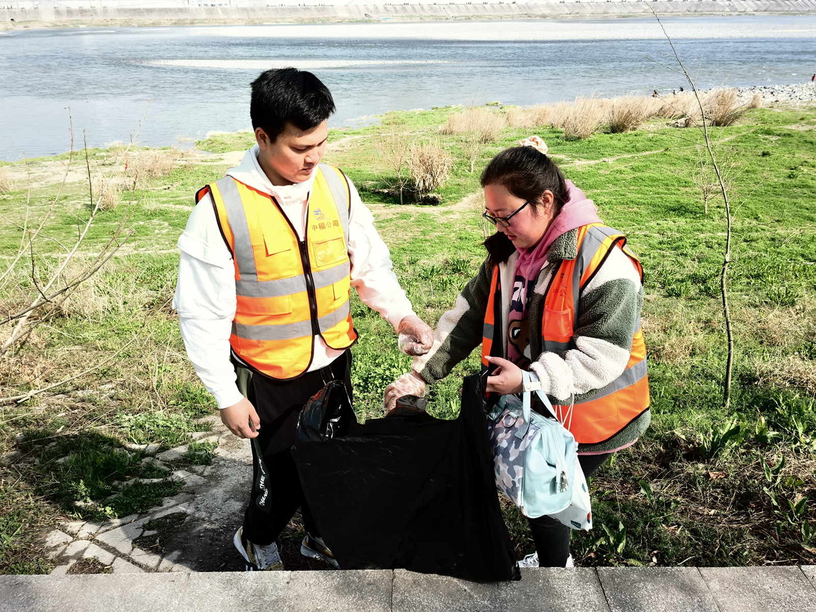 歡聲笑語之后,到了今天活動最重要的一個環節─撿拾白色垃圾。在胡總和徐書記的安排下,大家紛紛穿上勞動服裝,手持工具,穿梭在公園的各個角落尋找白色垃圾,雖然上午的天氣溫度很高,但是大家并沒有感到炎熱和疲憊,一絲不茍地完成著今天的使命。
