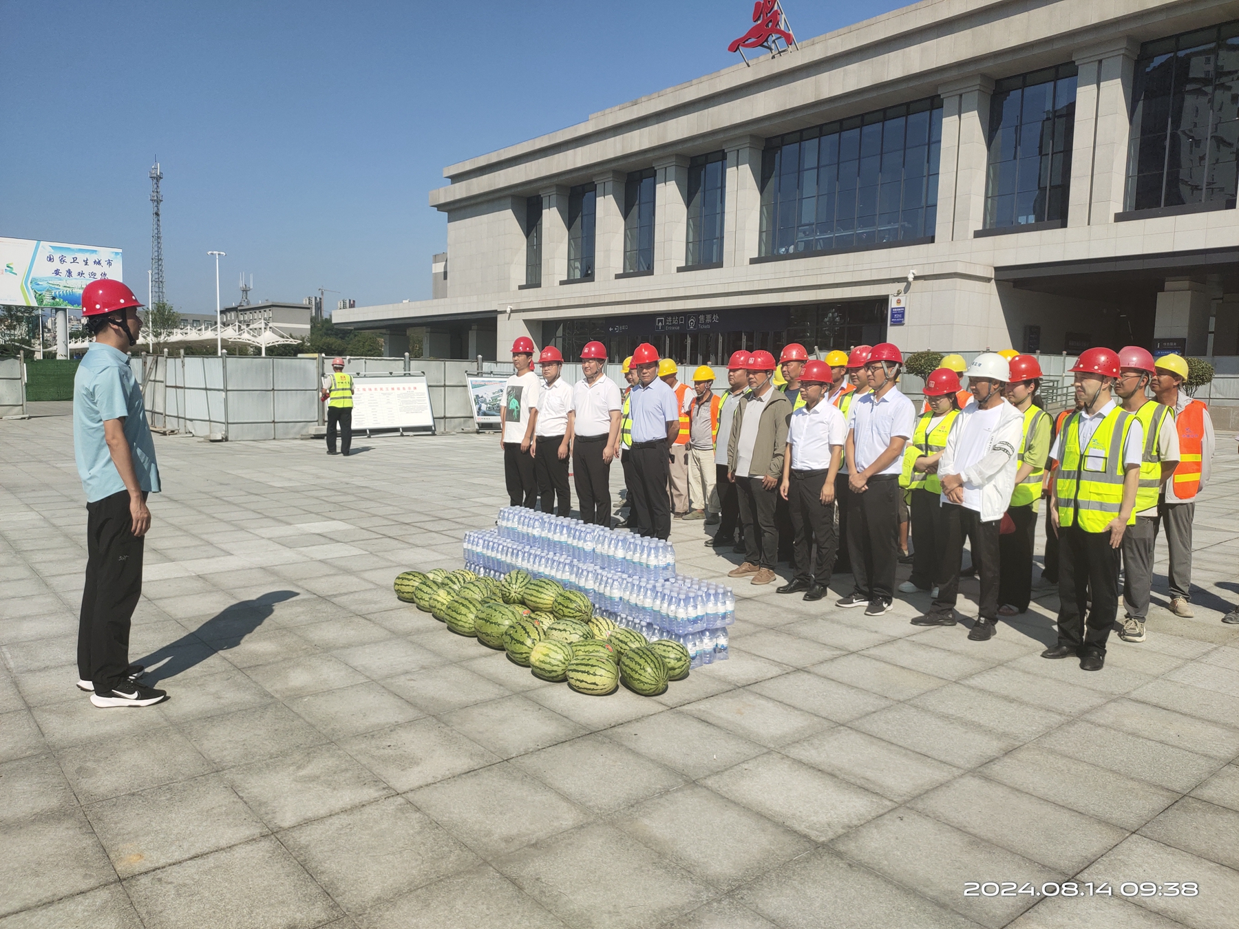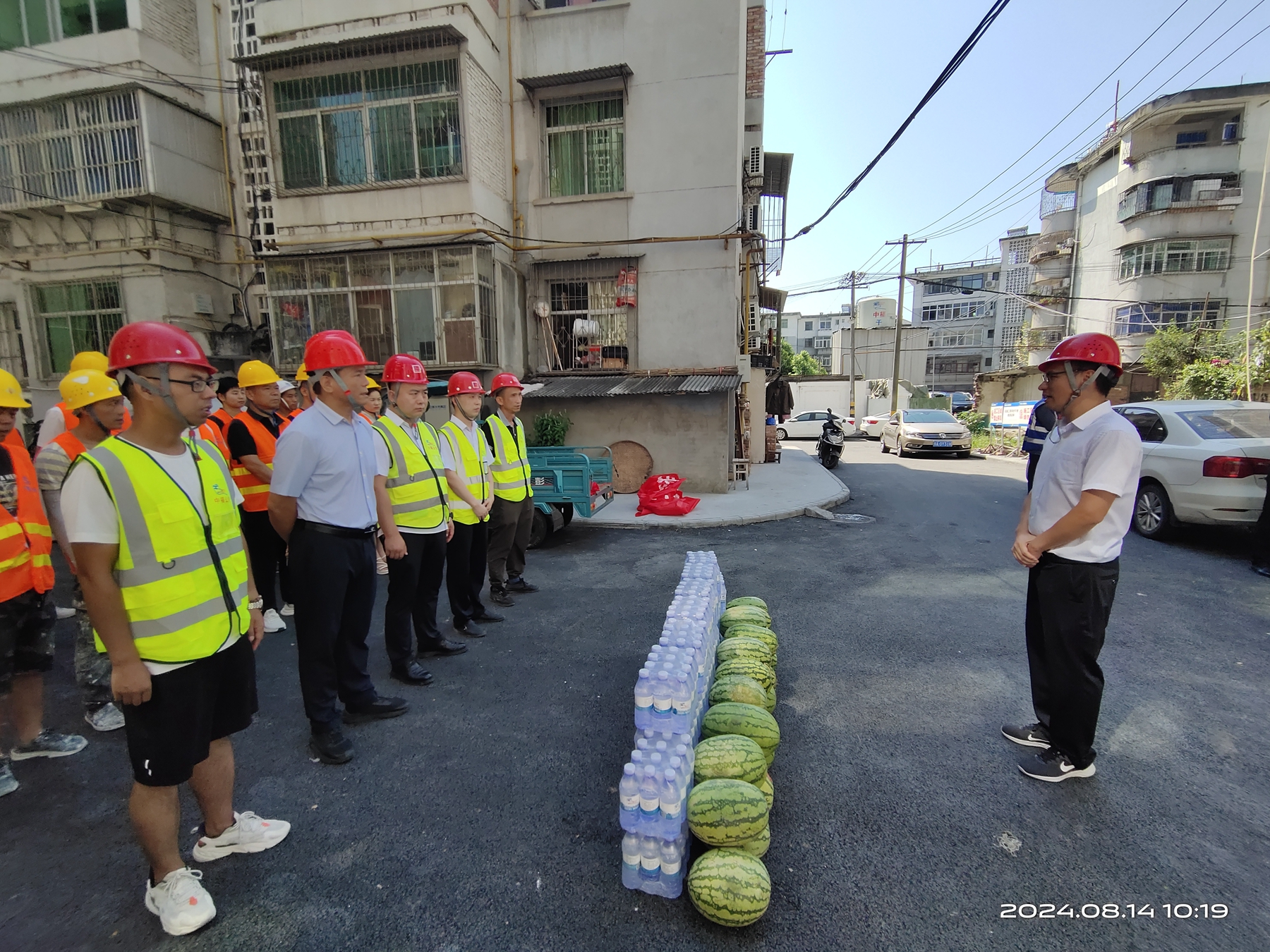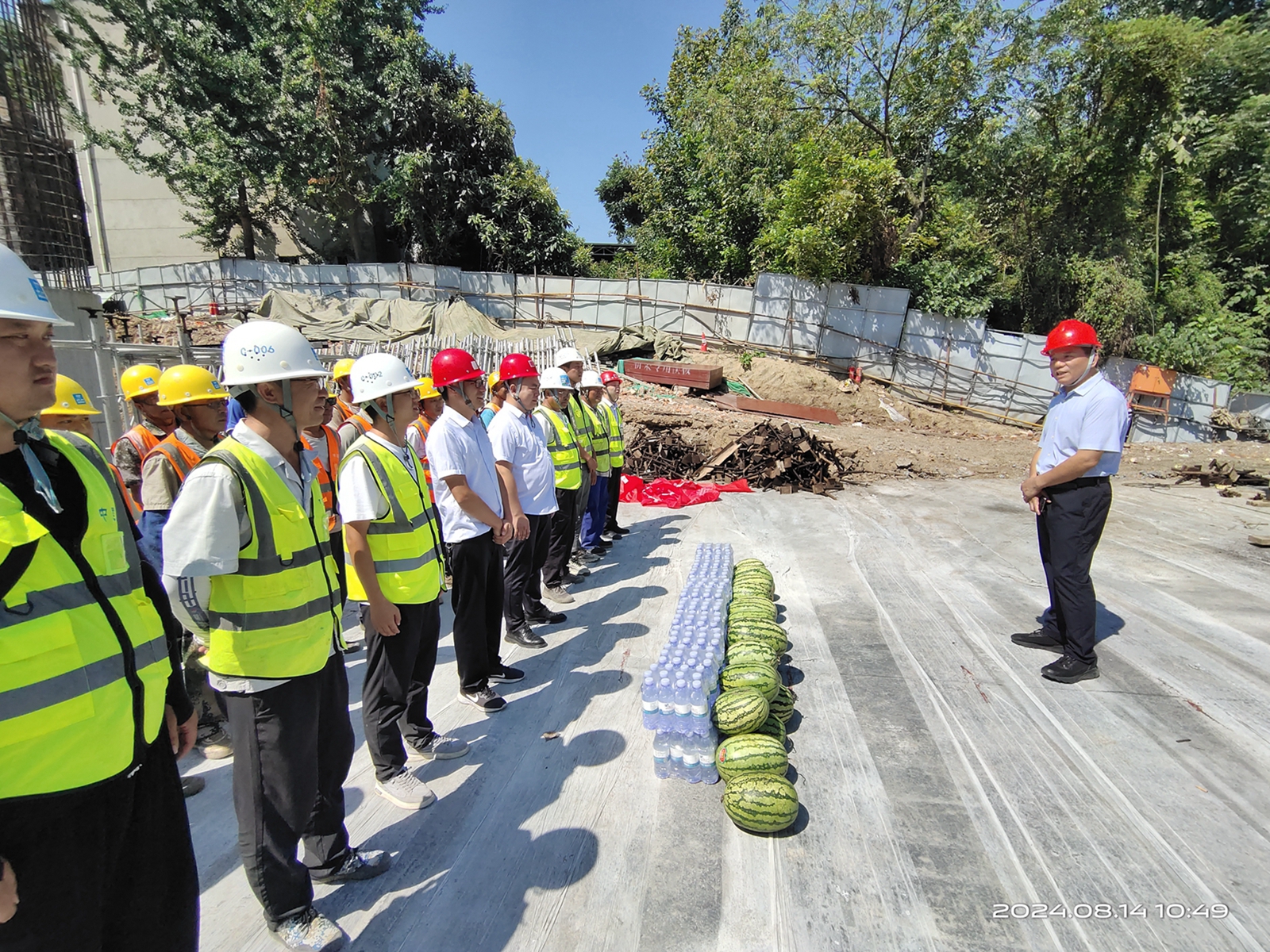 胡總和徐書記帶領相關人員頂著烈日先后來到環保建材分公司、安康火車站廣場改造項目部、果園小區改造項目部、關廟大橋項目部、盛美寶項目部、柏樾城項目部進行慰問。每到一處,胡總和徐書記深入施工現場,詳細了解項目施工進展和工人們的工作生活情況,勉勵大家在施工作業過程中,要錯開高溫時段,合理安排工作和休息時間,確保自身健康和安全。