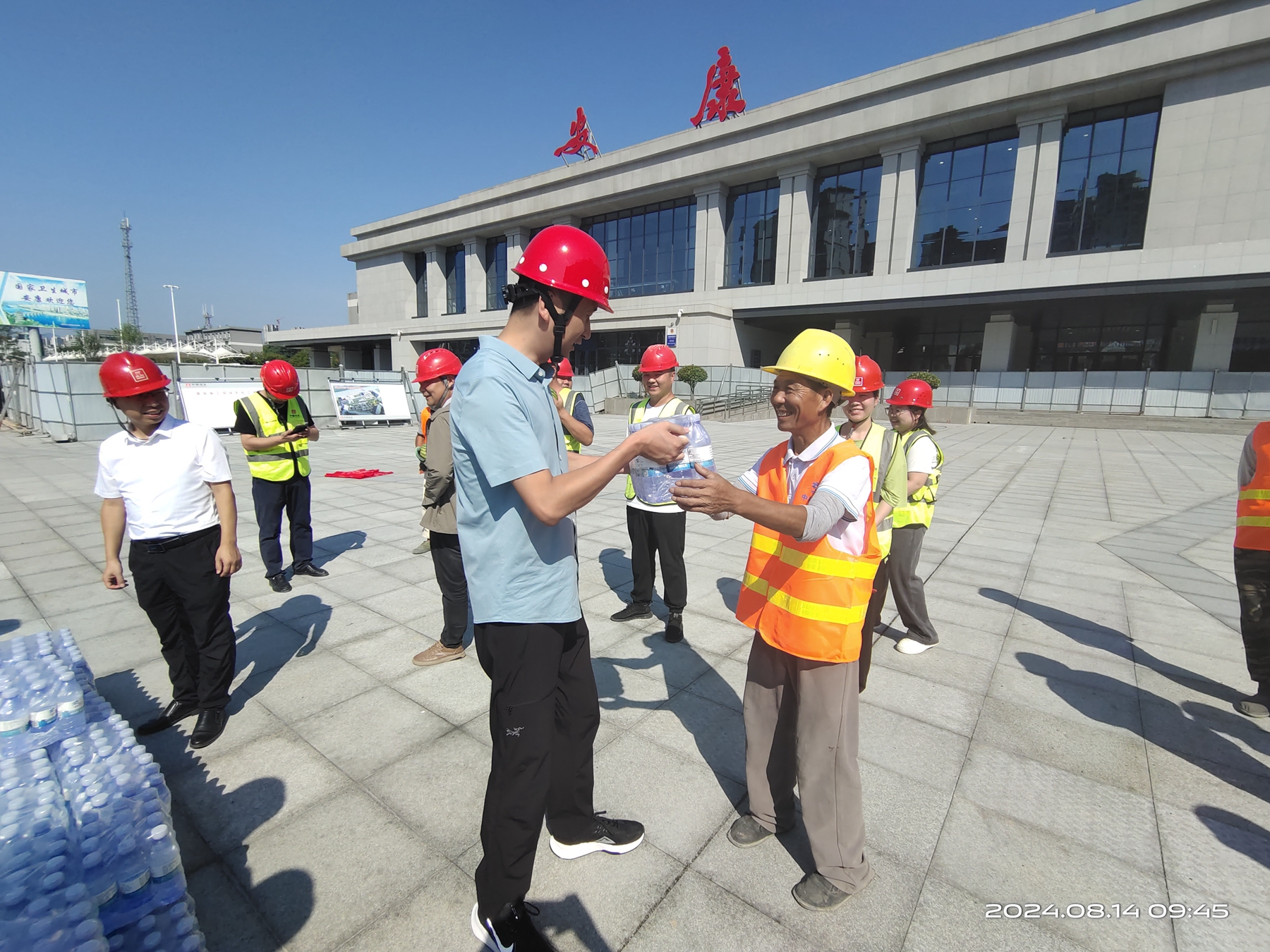在安康火車站廣場改造項目部慰問現場,安康市住建局市政園林處艾處長、安康中建公司相關負責人也積極參與了慰問活動,并做了熱情洋溢的講話,他們著重指出:“安康火車站廣場改造項目是安康市一項重要民生工程和形象工程,項目的順利推進,離不開各位工友師傅們的辛勤工作,在這炎炎夏日,你們依然堅守崗位,對你們這種敬業精神表示崇高的敬意和誠摯的感謝;也希望大家一定要做好防暑降溫,多多保重身體!”。隨后,各位領導一一將防暑降溫物品送到工人們手中,大家露出了開心燦爛的笑容。一句句貼心的話語、一個個關愛的舉動,如同一股清泉流淌在工人們的心田,讓這個夏日不再炎熱。