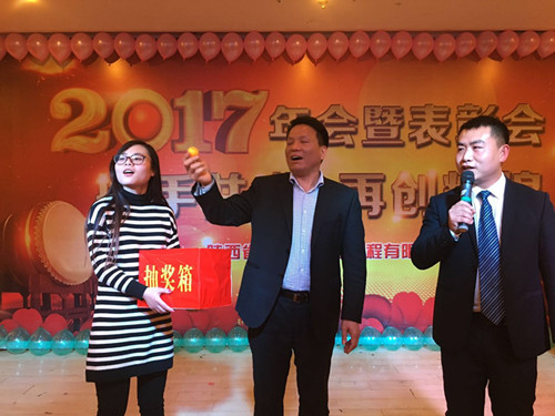 炮竹聲聲辭舊歲,和風送暖迎新春。又是一個陽光明媚、充滿希望的日子。2017年1月17日,我公司2017年年會暨2016年度工作總結與表彰大會隆重召開。 時光飛逝,歲月如梭,忙碌的2016年已經過去,充滿希望的2017年正向我們走來。在胡國財總經理的帶領下,我公司全體員工相聚一堂,回望過去,展望未來,共同譜寫2017年嶄新的篇章。 會上總經理胡國財做了新年致詞,他充分肯定了公司2016年的各項工作穩步推進,獲得了可喜的成績,同時也對公司來年的工作提出了新的要求新的期望。 在胡總新年致詞后,會議進入重要的表彰環節。公司對2016年度努力工作、勇于拼搏,并為公司做出突出貢獻的員工予以隆重表彰和嘉獎。徐文副總經理宣讀了表彰決定,隨后總經理胡國財、副總經理徐文、生產經理胡國文給受獎者頒發了獲獎證書和獎金。
