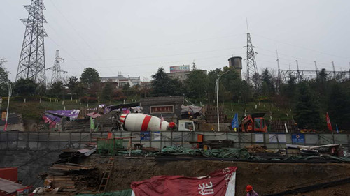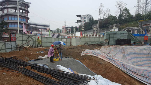 ![]() 香溪洞路口地下通道冒雨施工搶進度