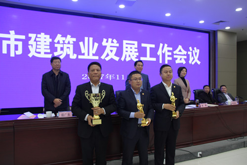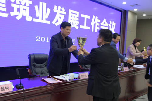 會上,對突出貢獻建筑業企業進行表彰和獎勵,并對獲得“魯班獎”、“全國市政金獎”、“長安杯”和“興安杯”建筑業企業進行了現場頒獎。陜西省建筑市場管理辦公室主任茹廣生為公司總經理胡國財頒發了獎杯。