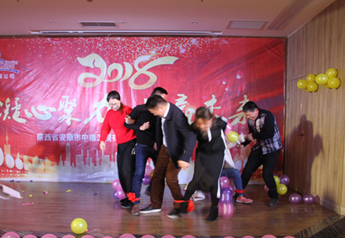 在晚宴上舉行了游戲和即興表演活動,大家歡聲笑語,共享中福人喜悅,尤其是胡國財總經理和與總經理助理徐尚岳合唱的《朋友》和綜合辦公室主任黨信芝表演的《感恩的心》,把年會推上了高潮。
