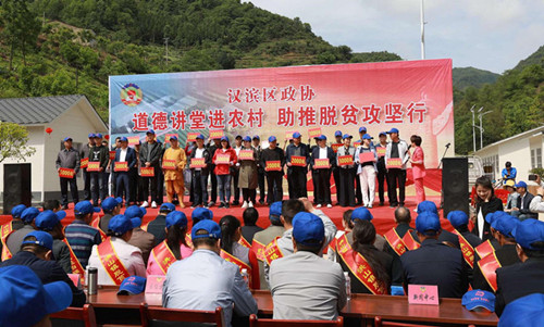 5月9日,公司派代表參加了漢濱區政協在洪山鎮乾隆村開展“道德講堂進農村 助推脫貧攻堅行”活動。漢濱區政協主席李建飛,副主席熊建華、吳雙有出席活動。