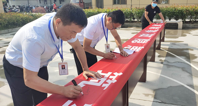 總經理胡國財在儀式上,做了重要講話,他強調公司安全生產負責人、一線安全員要圍繞責任落實、隱患排查、風險管控、應急處置等開展學習教育和輔導交流活動,進一步認識到安全生產工作的重要性,將安全生產責任落實到本職工作中,不斷提高自身安全生產意識和防范化解安全風險的能力,消降事故隱患,筑牢安全防線,為公司營造一個安全、科學、高效的生產環境和生活環境。 會后, 公司領導、各部室及各基層單位參會人員在印有“消除事故隱患,筑牢安全防線”的橫幅上鄭重簽字,為安全發展作出莊嚴承諾。
